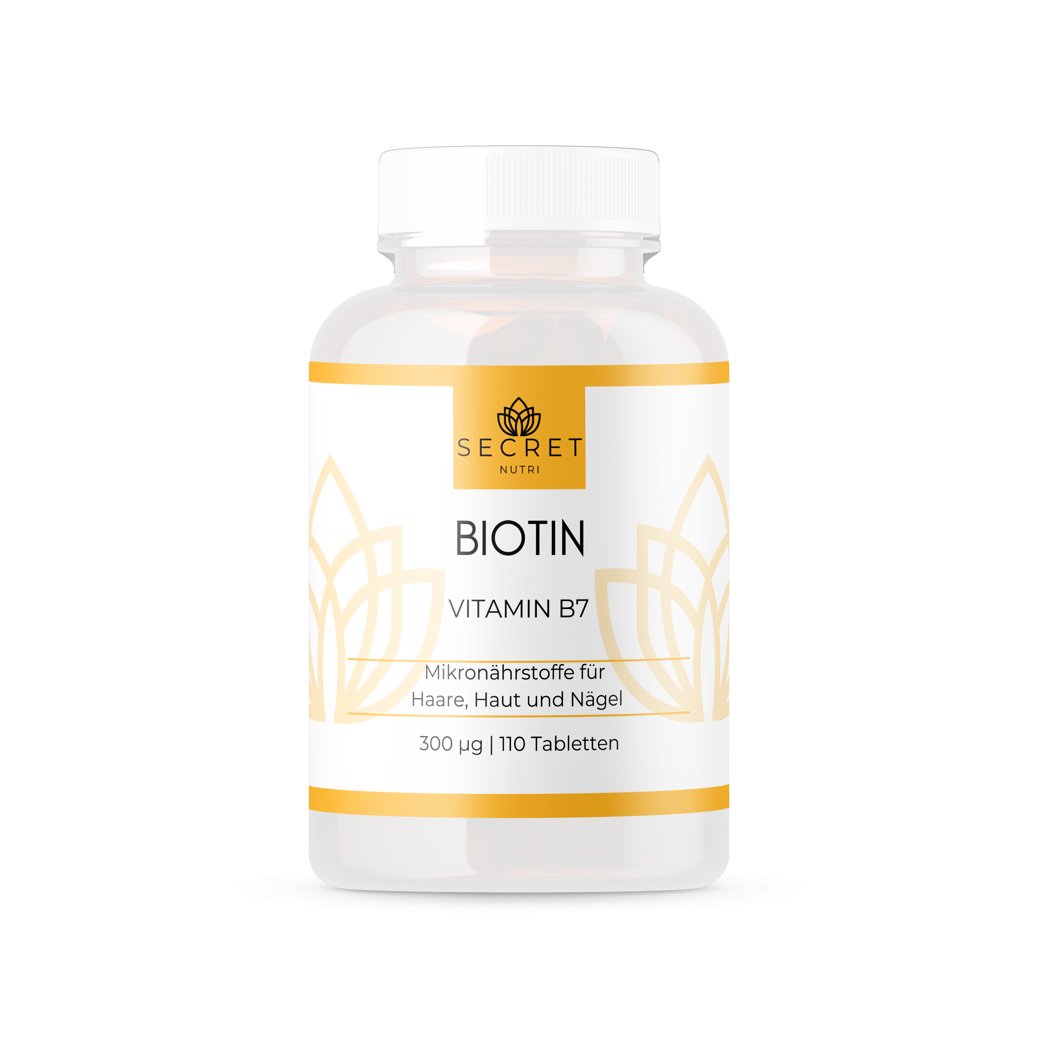 Nahrungsergänzungsmittel: Biotin / Vitamin B7 – Mikronährstoffe für Haare, Haut und Nägel. Mengenangaben pro Tablette laut Hersteller.